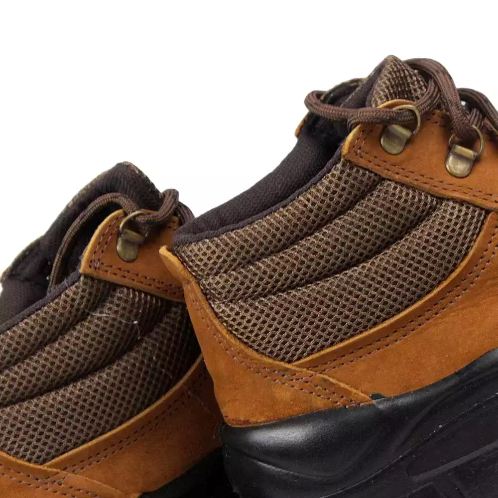 Bota de segurança confeccionada em couro nobuck cor castor, indicada para áreas administrativas, aventuras, mecânicas, montadoras, motoboys e prestadoras de serviços. Este calçado tem estrutura fibrosa e microporosa, que ajuda a manter a temperatura dos pés, colarinho e lingueta soft acolchoados na cor café. Ele apresenta fechamento com cadarço preto, solado isolante em PU bidensidade, injetado diretamente no cabedal, e palmilha de montagem em poliéster resinado com biqueira de polipropileno. Para um conforto maior, o calçado ainda conta com forração interna air comfort com tecnologia antibacteriana que retém o suor.