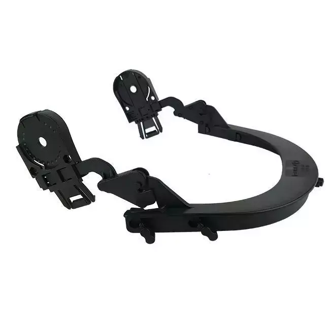 O Suporte para montar o protetor facial no capacete de segurança é fabricado em ABS, é fixado ao capacete por meio. A proteção facial é fixada no suporte universal através de pinos plásticos.